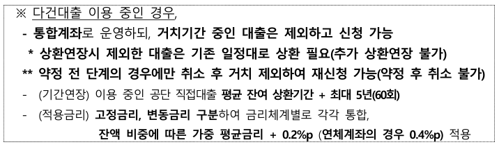 이용 중인 공단 직접 대출 평균잔여 상환기간 + 최대 5년(60회)