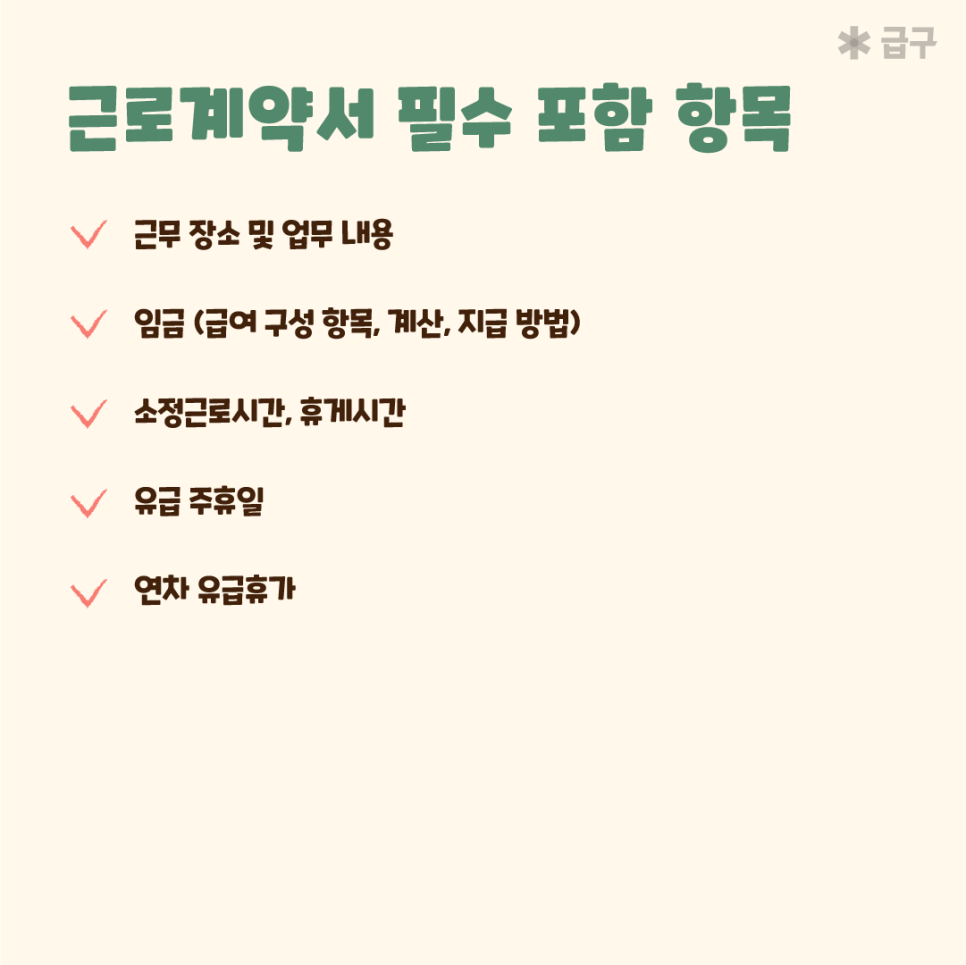 아래 사항들을 근로계약서 작성 전 같이 확인해주시면 좋을 것 같습니다 :)