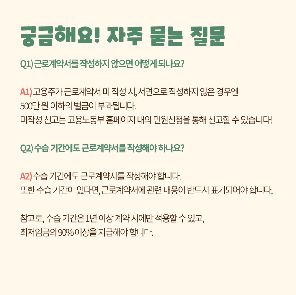 Q2. 수습기간에도 근로계약서를 작성해야 하나요?