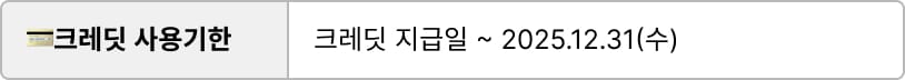 크레딧 사용기한은 크레딧 지급일로부터 25년 12월 31일 수요일까지입니다