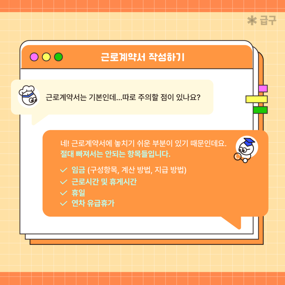 아르바이트 생 채용이 처음인 사장님이신가요? 알바앱 급구에서 근로계약서 작성 방법 부터 임금 지급의 원칙 종류와 의미, 수습기간 적용 여부 및 임금 계산법 핵심만 알려드려요!