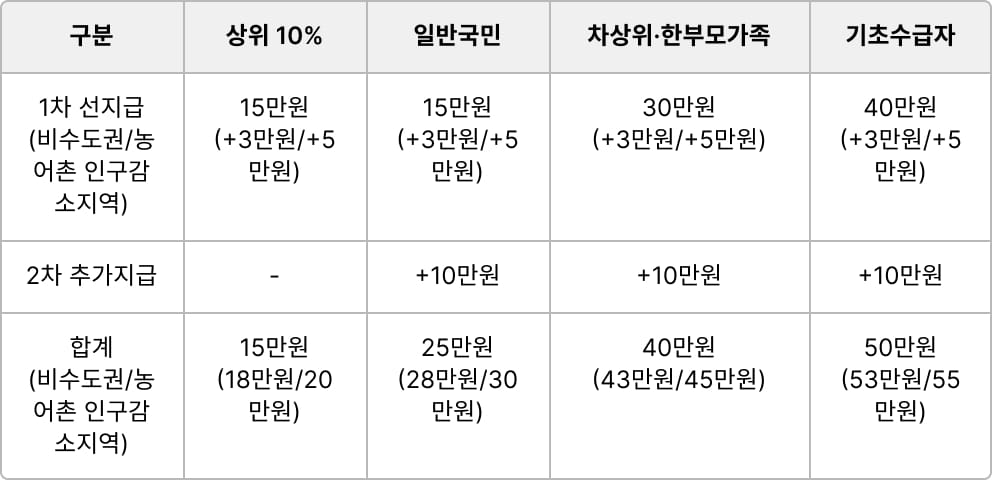 전 국민이 최소 15만 원 이상의 금액을 수령 가능해요!