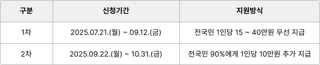 민생회복 소비쿠폰은 차수에 따라 신청기간 및 지원방식이 달라집니다!