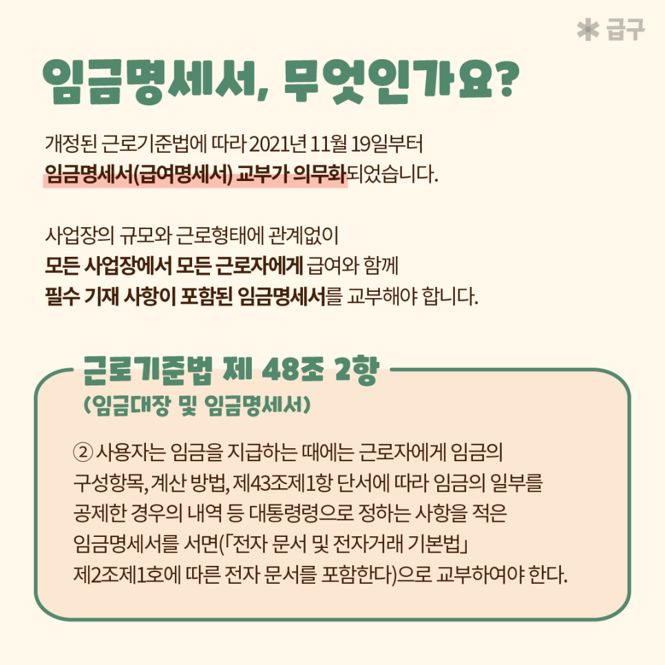 임금명세서 급여명세서 양식 및 교부 방법! 알바앱 급구에서 알려드려요