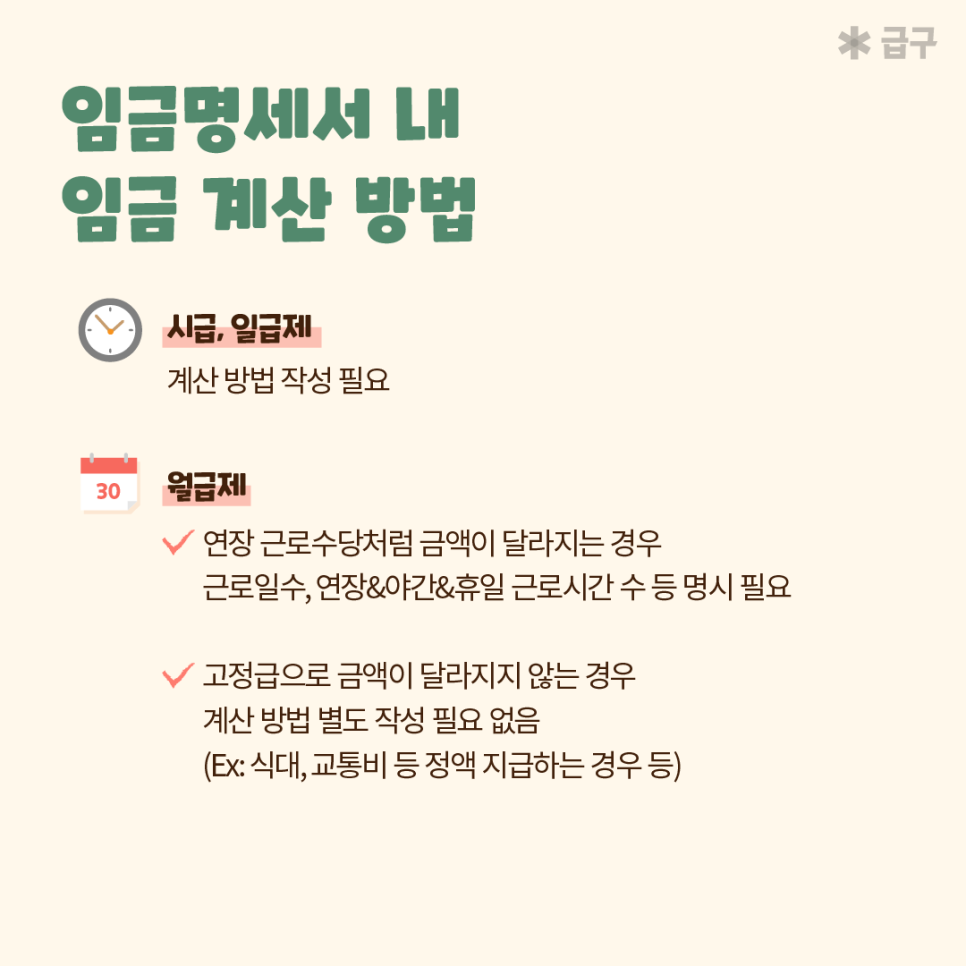 - 항목별 임금 계산 방법