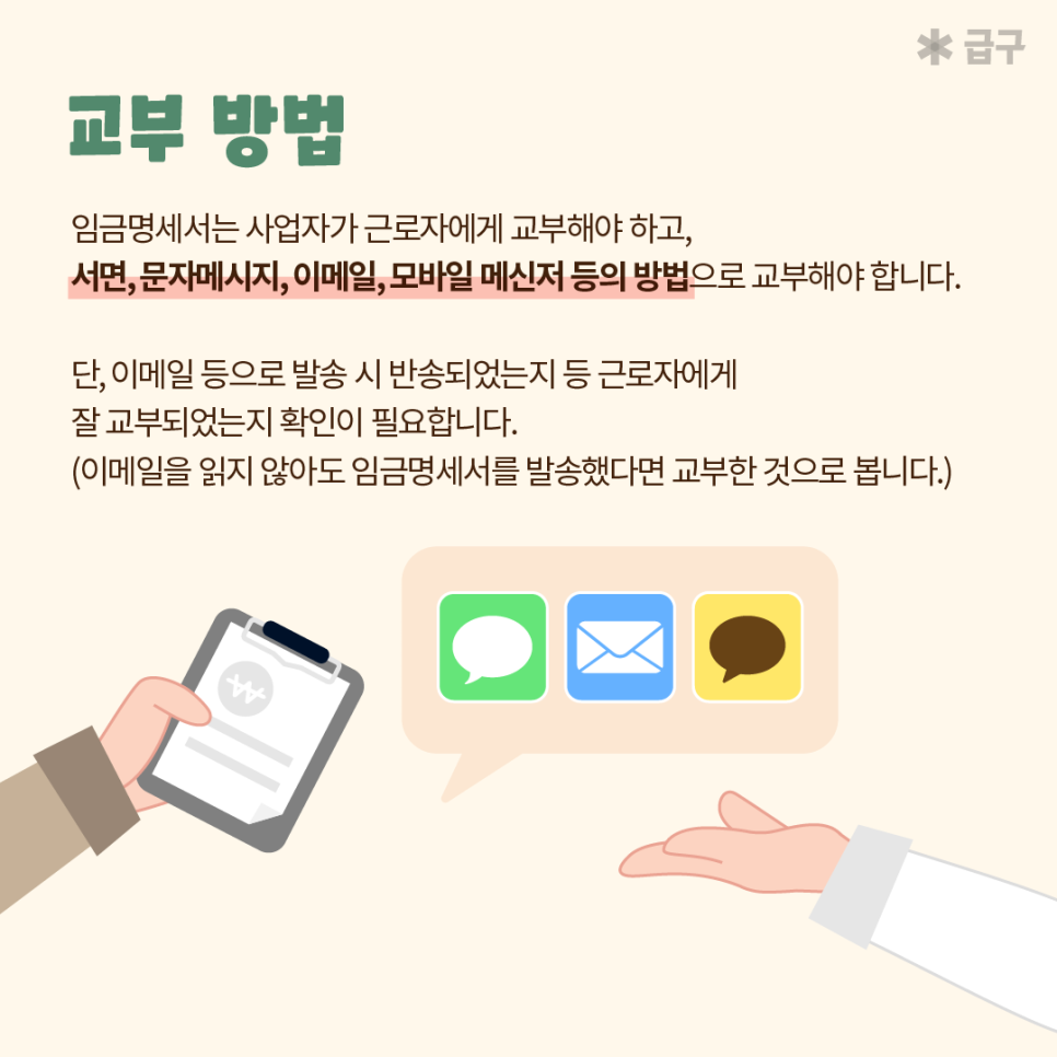 그렇다면 임금명세서 교부하는 방법은 어떻게 될까요?