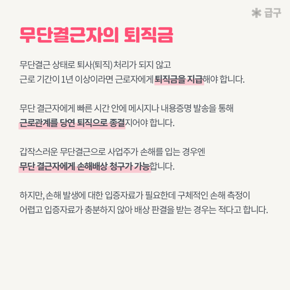 무단결근자에게 손해배상 청구가 가능한 점 참고 부탁드립니다.