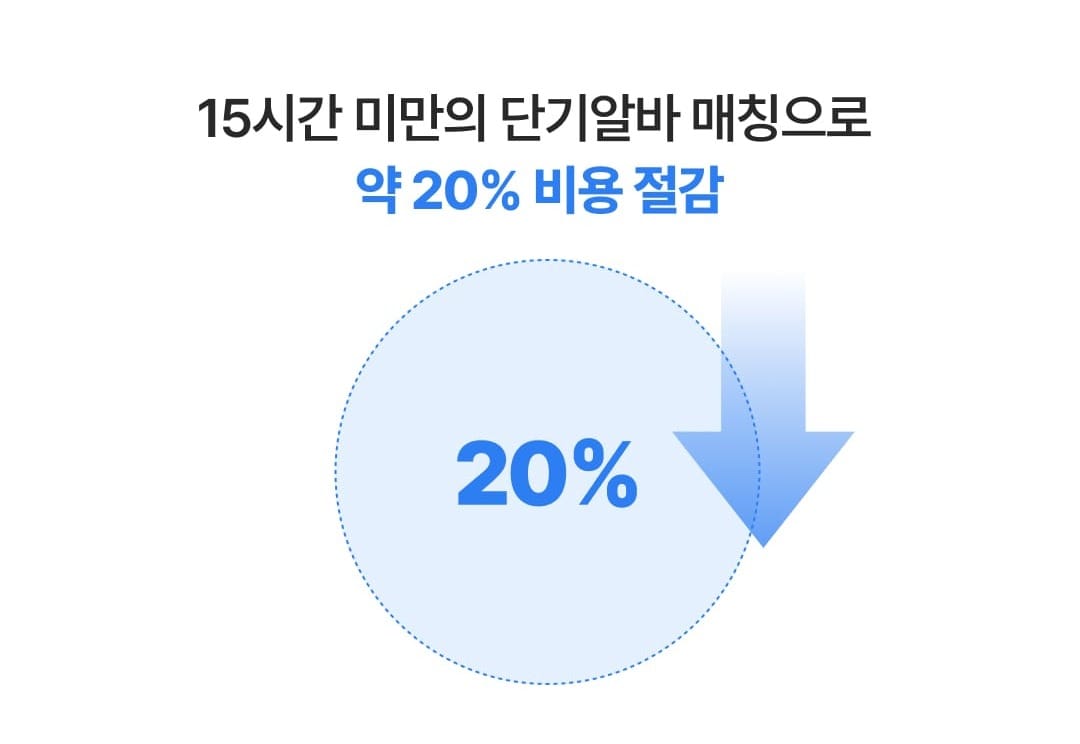 * 단기 채용 시 정기 알바 채용 때보다 약 20%의 고정 비용이 줄어들어요