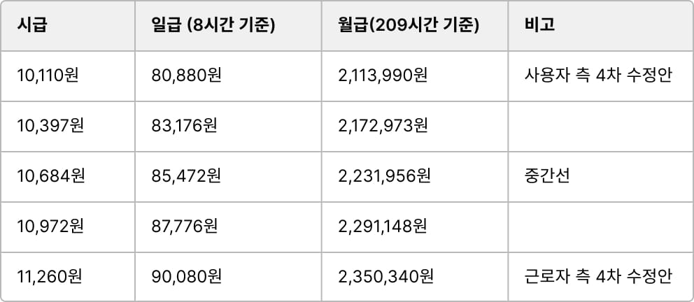 근로자 제안 기준(4차) 일급은 약 9만 원, 월급은 약 2백3십만 원