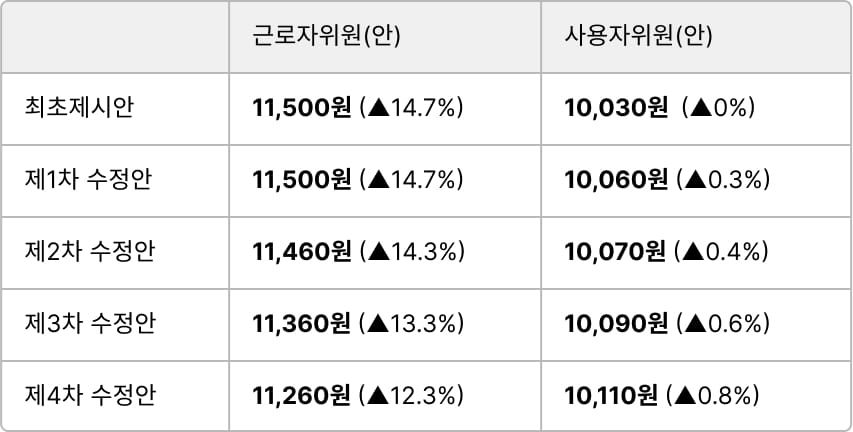 매년 최저임금위원회에서 양측의 간극을 좁히기 위해 협의 회의가 열리고