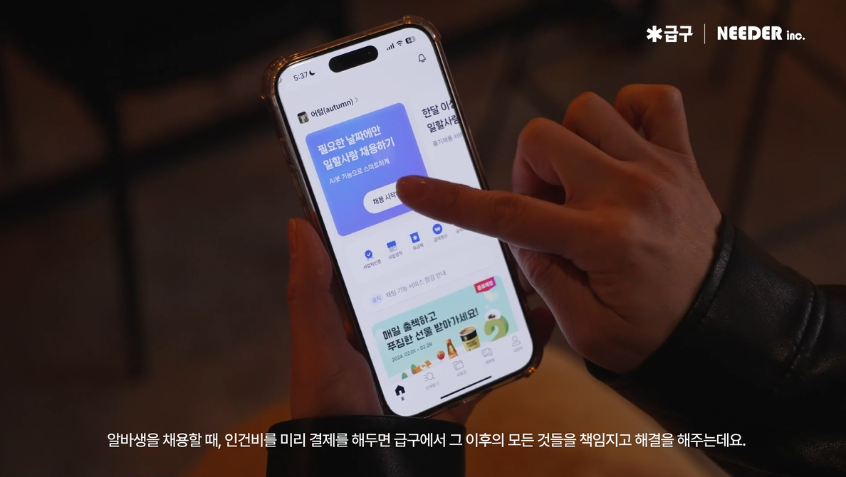 그래서 장사를 시작하면서 아는 사장님을 통해 급구 앱을 소개받아 인력을 충원하고 있습니다.