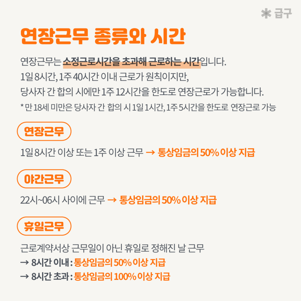 *단, 18세 미만의 경우 1일 1시간, 1주 5시간까지 연장 근로 가능