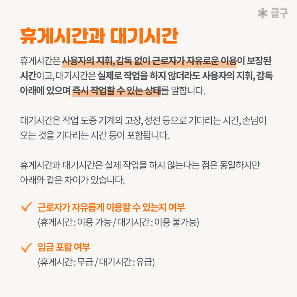 그리고 휴게시간과 대기시간이 차이점은 무엇인지