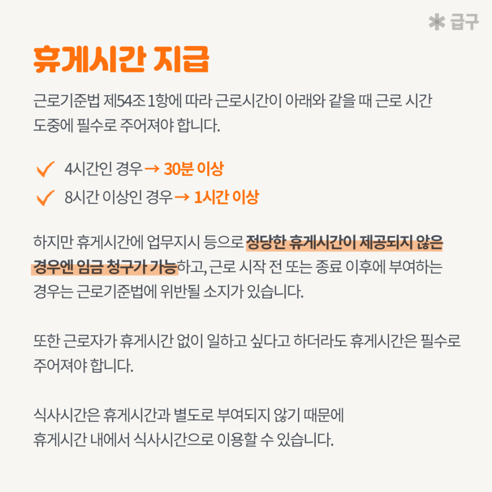 🌅휴게시간은 어느정도 지급되어야 하나요?